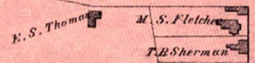 When comparing the 1877 and the 1922 maps, the fifth structure from the left on the 1922 map is the correct shape and is in the correct position to be the E.S. Thomas House. The mapmaker in 1877 primarily depicted residential and commercial structures. A possible conclusion is that in 1877, "Anderton's Desire" was likely used as an small outbuilding. Therefore it would not have been pictured. Other possibilities are that the larger E.S. Thomas footprint is actually the smaller "Anderton's Desire" structure depicted in 1922. Maybe the mapmaker drew the footprint too large in 1877. Another less likely possibility is that this very old structure was moved from elsewhere in or near town.